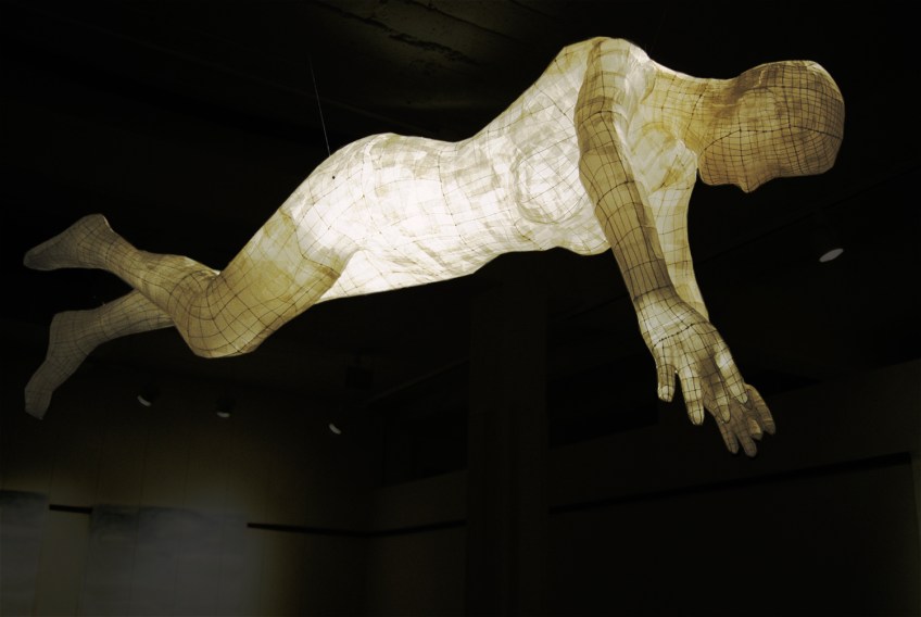 Floating Self Published 2011/10/16 at 1500 × 1005 in Installations 2000 copper wire, silk tissue life size sculpture, suspended Like Loading...