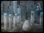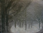 The Twilight Hour of each day, the luminous space between day and night, is where the imagination creates images of things unseen. In my recent prints I am using laser etch technologies to create digitally mediated relief plates into a variety of wood veneers from digitally composite images. The laser images are combined with other processes to present the impact and relevancy of digital processes as they relate to printmaking’s graphic identity, the creation of unique matrixes, and the interconnectivity of printmaking as a system of visual language. By researching laser etch technologies I am interested in developing a new graphic identity within current printmaking practices. As with all technologies and techniques there is a host of possibilities, and limitations. Understanding what is possible by using digitally mediated information enables me explore the creation of a matrix with an unprecedented freedom. It is important to understand that it is not my intention to re-create other processes by digitizing a mark, color, or surface. Rather, I am interested in new forms of expression, knowledge, creativity, and the expansion of printmaking studio practices.