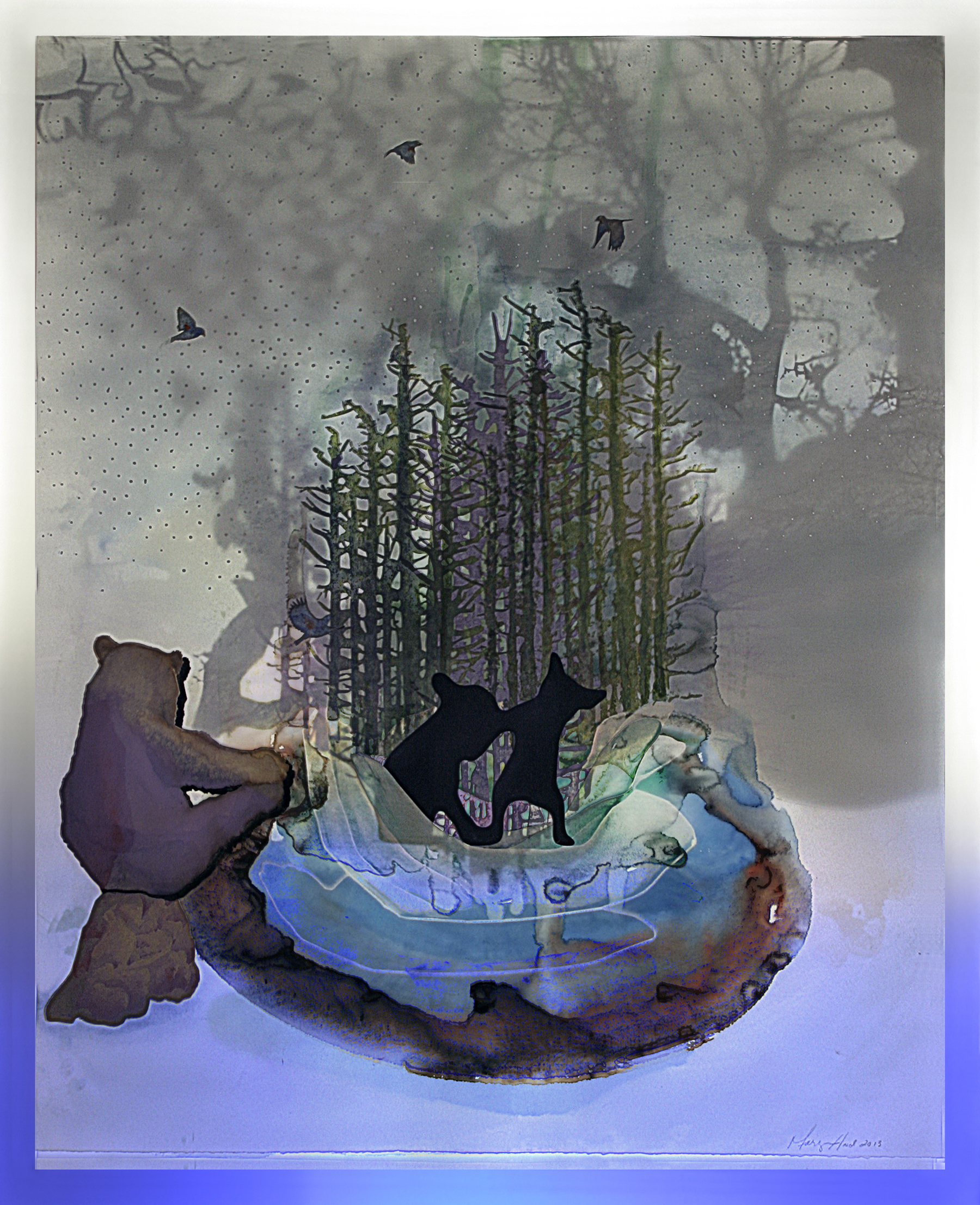 Alert Others To Your Presence Published 2013/08/24 at 1800 × 2213 in Even In Arcadia 2013 2013 laser cut/engraved collage on vellum with watercolor and LED lights. Like Loading...