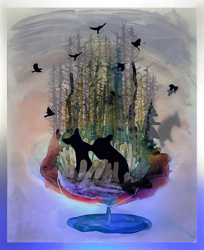 Seemingly Simplicity Published 2013/08/24 at 1800 × 2204 in Even In Arcadia 2013 2013 laser cut/engraved collage on vellum with watercolor and LED lights. Like Loading...