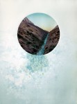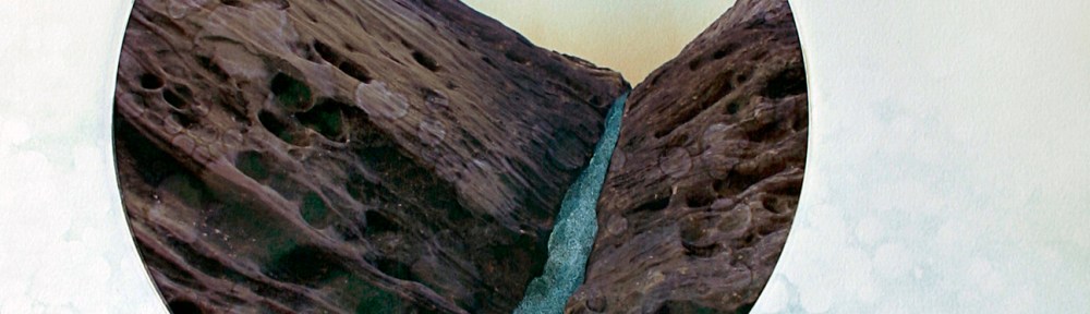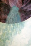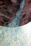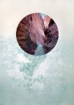 With the Planet series I feel that the “water” is more representative of our human presence on the earth, slowly eroding a path for our existence, leaving canyons and valleys in our wake.  The spill over into the larger “pool” is more representative of time and our collective unconsciousness.The process is a combination of inkjet printing from digital photographs I took during a trip to the Red Rock National Monument in Nevada combined with layers of monotype and relief printmaking methods. The sky blends and rock “details” are monotypes overprinted on the inkjet layer, giving the print a bit more depth and texture. The final layer is the relief fingerprint layer, in three colors.