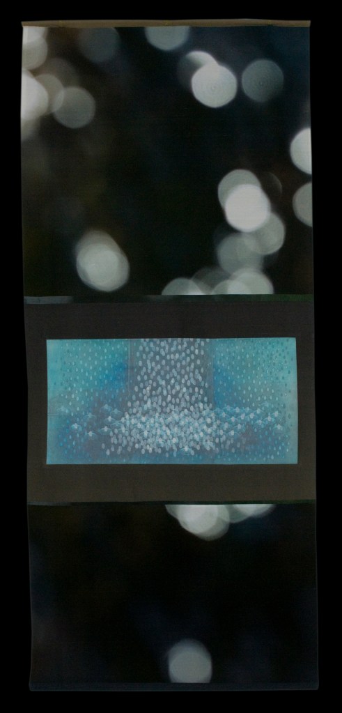 Ten Thousand Tears #12 Published 2011/10/03 at 1500 × 3127 in Ten Thousand Tears 2007-2009 2007 42 x 102” Inkjet print from digital photograph on silk combined with an unique impression intaglio printed on mulberry paper and mounted to cotton muslin, sewn and detail with silk brocade. Like Loading...