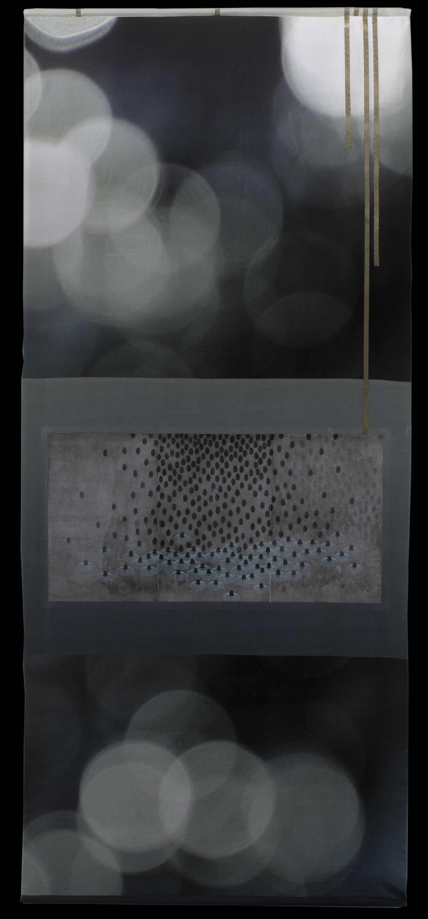 Ten Thousand Tears #1 Published 2011/10/03 at 1500 × 3217 in Ten Thousand Tears 2007-2009 2007 42 x 102” Inkjet print from digital photograph on silk combined with an unique impression intaglio printed on mulberry paper and mounted to cotton muslin, sewn and detail with silk brocade. Like Loading...